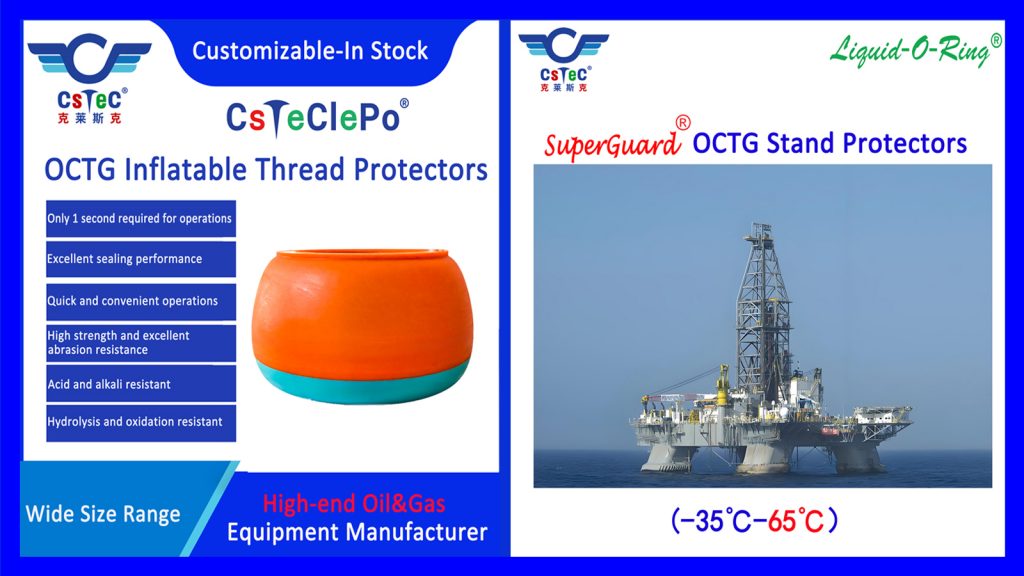 The CsTeClepo brand tubing and casing quick inflatable thread protector is an innovative high-end inflatable thread protector product independently developed by CsTeC Company. It is particularly suitable for the rapid movement and connection operations of tubing and casing in deep water and ultra-deep water oilfield sites, greatly enhancing operational efficiency and safety, thereby reducing the operation costs in deep water and ultra-deep water sites. The CsTeClepo brand tubing and casing quick inflatable thread protector was independently developed by CsTeC Company by integrating the top-quality resources in the industry, integrating the latest technological elements, self-funded investment in research and development, delving deeply, exploring, repeatedly testing and practicing, continuously innovating and creating, and striving for excellence. It took 12 months of meticulous research and development to complete. Its main design is applied to deep water and ultra-deep water platform drilling and completion operations. The authoritative institutions have comprehensively verified that its overall performance, including tensile strength, pressure resistance strength, wear index, etc., has reached the international leading level. The CsTeClepo brand tubing and casing quick inflatable thread protector is another significant breakthrough of CsTeC Company after the SuperGuard brand tubing and casing stand protector product. It is another milestone masterpiece of CsTeC Company, dedicated to helping the great cause of deep water oil and gas field development in China and the world’s deep water and ultra-deep water oilfield development projects. For deep water and ultra-deep water site operations with daily operation costs of millions of dollars, every second and minute of efficiency improvement is extremely precious, and safety is always the highest pursuit. CsTeC Company always takes the core interests of customers as the orientation, strives to infinitely improve customer service satisfaction, and looks forward to the SuperGuard brand tubing and casing stand protector product and the CsTeClepo brand tubing and casing quick inflatable thread protector product will contribute more and more value to the vast number of industry customers in China and the world’s deep water and ultra-deep water oilfield development undertakings. The CsTeClepo brand tubing and casing quick inflatable thread protector adopts advanced rapid inflation and deflation technology, which can provide protection against foreign objects, pollution, and impact for the mating area of the oil-tube during the movement process. The operation of the CsTeClepo brand tubing and casing quick inflatable thread protector is convenient, with the inflation and deflation process in each single operation cycle only taking 1 second, thereby greatly improving the operation efficiency and safety of the oilfield site. The CsTeClepo brand tubing and casing quick inflatable thread protector also has high strength, super wear resistance, acid and alkali resistance, UV resistance, good insulation, anti-hydrolysis, and anti-aging properties, making it an excellent protective wire product with comprehensive performance. The CsTeClepo brand tubing and casing quick inflatable thread protector is compatible with tubing and casing within the 3-1/2’’ – 20’’ range. Additionally, it can support customization for individual special sizes and specifications.