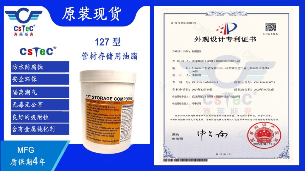 2026年04月25日,克莱斯克CsTeC发布CsTeC品牌127型深水高温免金属管材存储用油脂产品。CsTeC品牌127型深水高温免金属管材存储用油脂是一款适用于石油天然气行业的对于管材长期存储期间提供防腐蚀保护的油脂类产品。不同于其它含有65%固体颗粒并且可以产生腐蚀性环境的API改良型油脂,CsTeC品牌127型深水高温免金属管材存储用油脂组分中不含金属元素,因而从根本上消除了产生金属化学腐蚀性的环境。CsTeC品牌127型深水高温免金属管材存储用油脂被设计用于控制由于潮气侵入而导致的丝扣表面的生锈以及凹陷等的形成。CsTeC品牌127型深水高温免金属管材存储用油脂的组分中也含有抑制剂成分,以用于将井下化合物,硫化氢,二氧化碳以及其它污染物产生的影响降到最低。这款橙色的油脂产品在金属表面形成一层保护膜,从而可以抑制氧化以及阻止锈的产生。CsTeC品牌127型深水高温免金属管材存储用油脂的防水特性使得其可以防止水分以及潮气的侵入,从而极大地降低了生锈的风险。CsTeC品牌127型深水高温免金属管材存储用油脂也可以被作为润滑剂使用。CsTeC品牌127型深水高温免金属管材存储用油脂不可以被作为密封剂使用,尤其是绝对不可以在井下作业时被使用。