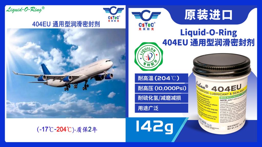 Liquid-O-Ring品牌404EU通用型耐高温高压润滑密封剂是一款适用于要求最佳润滑效果的工作场合的通用型润滑密封剂产品。404EU通用型耐高温高压润滑密封剂的制造工艺以及配方使其具有其它常规同类产品所不具备的多元化通用性能。404EU通用型耐高温高压润滑密封剂可以被使用在黄铜,铝,铜,不锈钢以及常规的钢制螺纹上。404EU通用型耐高温高压润滑密封剂由LIQUILON配制而成,从而使其不受酸性,油类,腐蚀剂以及常规溶剂等物质的影响。404EU通用型耐高温高压润滑密封剂可以被使用在温度高于>400°F (>204°C),压力大于10,000 psi的工况下。404EU通用型耐高温高压润滑密封剂可以对涂装的部件提供长期持续的保护从而使设备处于极佳的工作状态。404EU通用型耐高温高压润滑密封剂被推荐用于要求长期持续润滑的设备以及不允许停机的设备上。404EU通用型耐高温高压润滑密封剂将会降低设备磨损,并且其独特的密封特色将会阻止其润滑性的流失。404EU通用型耐高温高压润滑密封剂具有一种独特的镀层以及涂装性能从而使其可以产生一层残留物润滑薄膜,这层薄膜可以有效避免金属面接触以及可以防锈防腐蚀。