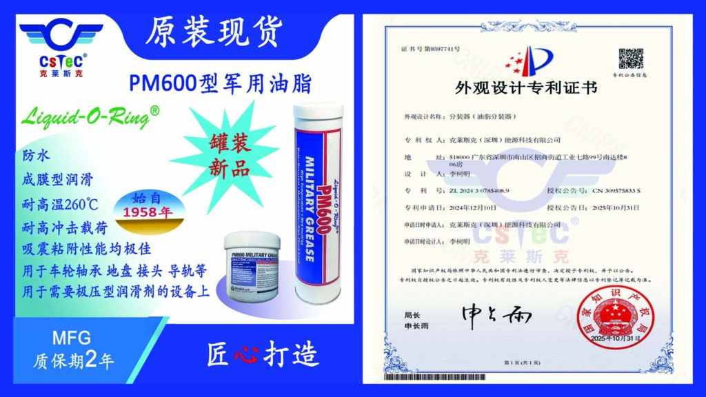2026年01月16日,为满足中国区相关客户对于Liquid-O-Ring品牌PM600型耐高温军用润滑脂在具体使用过程中的多元化需求,克莱斯克CsTeC公司经过相关市场调研以及各项测试优化之后,正式推出PM600型耐高温军用润滑脂的罐装新品,具体包括4盎司罐装,5盎司罐装和7盎司罐装。目前上述3种罐装新品均已在克莱斯克CsTeC公司旗下Liquid-O-Ring品牌阿里巴巴以及淘宝等产品旗舰店同时上线,随时欢迎洽谈咨询。克莱斯克CsTeC与Liquid-O-Ring品牌产品制造商借此机会再次感谢广大中国区客户对于PM600型耐高温军用润滑脂产品一直以来的支持与厚爱。